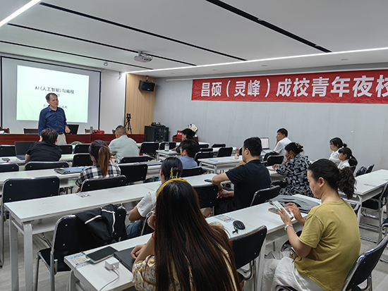 據(jù)悉,昌碩成校與村社合作的模式為:成校了解村社資源和居民學(xué)習(xí)需求,結(jié)合學(xué)校資源優(yōu)勢向村社提供培訓(xùn)青年夜校培訓(xùn)菜單和宣傳小程序,村社工作人員通過轉(zhuǎn)發(fā)成校的宣傳小程序?qū)⑴嘤?xùn)菜單傳達到村社居民。“人工智能&編程”培訓(xùn)班就是這樣產(chǎn)生的,該培訓(xùn)班昌碩成校邀請項道德老師主講,首次課項老師介紹了人工智能發(fā)展的歷史、目前網(wǎng)絡(luò)上流行的人工智能平臺,展示了人工智能在工作、學(xué)習(xí)、生活等方面強大的功能,并教授學(xué)員們?nèi)绾卫萌斯ぶ悄軐懗鲆皇缀迷姟?/p>