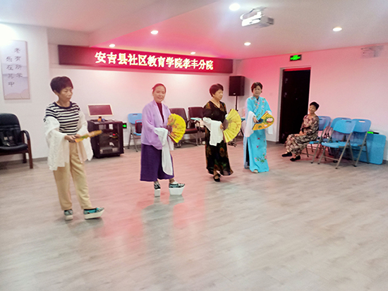 連日來(lái),安吉社區(qū)教育學(xué)院孝豐分院的舞蹈室從上午一直排到晚上,都是滿滿的。為迎接即將到來(lái)的中華人民共和國(guó)成立七十五周年,老年學(xué)員們正緊鑼密鼓地排練文藝節(jié)目,獻(xiàn)禮祖國(guó)華誕。