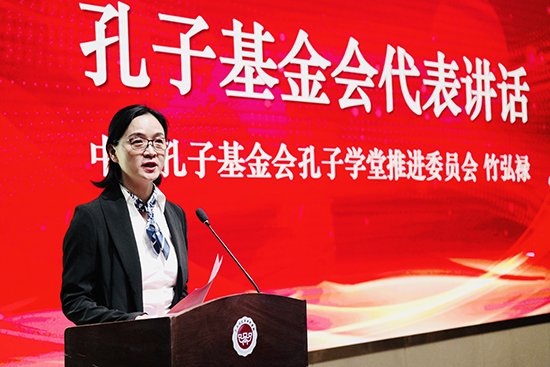 孔子基金會代表講話:竹弘祿詳細(xì)介紹了孔子學(xué)堂的成立背景與發(fā)展歷程,深入闡述了孔子思想的核心價值和時代意義。她強(qiáng)調(diào),孔子的教育思想強(qiáng)調(diào)“有教無類”“因材施教”,注重培養(yǎng)學(xué)生的品德和才能,對當(dāng)今教育仍具有重要的啟示作用。她勉勵學(xué)生能夠充分利用孔子學(xué)堂這一寶貴資源,深入學(xué)習(xí)孔子文化,積極傳承儒家經(jīng)典。