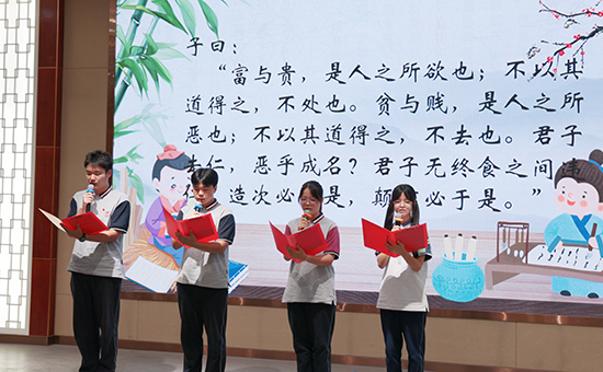 儀式現(xiàn)場,學(xué)生代表齊聲誦讀了《論語》中的經(jīng)典篇章,“三人行,必有我?guī)熝伞衿渖普叨鴱闹洳簧普叨闹?rdquo;朗朗讀書聲中,飽含著新時代學(xué)子對儒家文化的敬仰與熱愛。