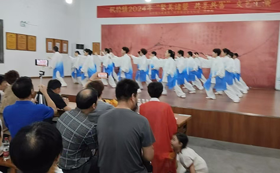 演出歷時兩個小時,共有舞蹈、太極拳、歌曲、越劇、樂器演奏等18個節目,諸暨市楓橋鎮人民政府主辦,楓橋鎮櫟橋村文化禮堂承辦,演員來自天竺社區、楓一社區、梅苑村等十多個村(社區)的文藝演出隊,近200位村民到場觀看。(孫文明)