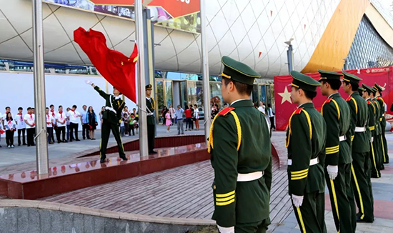 為慶祝新中國成立75周年,弘揚愛國主義精神,增強民族自豪感和社會責任感,9月30日上午,嘉興市建筑工業學校國旗隊受邀來到杭州師范大學附屬油車港中學,開展升旗儀式活動。國旗隊用自己的行動上好了一堂生動的愛國主義教育實踐課,激勵著同學們以更加飽滿的熱情投入到學習中,為祖國的繁榮富強貢獻自己的力量。