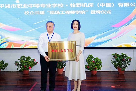 會議現場舉行了校企共建“現場工程師學院”啟動儀式,由宋怡玲副市長、孟廣斐調研員、侯四海副主任、王獻總督學、姚雁書記、Tsuchiya Yuichiro副總裁共同上臺開啟儀式,平湖市職業中等專業學校與牧野機床(中國)有限公司校企共建“現場工程師學院”正式成立。宋怡玲副市長為校企共建“現場工程師學院”授牌。