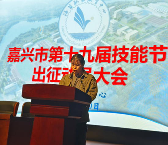 該校參賽學(xué)生代表李依婷和蔣佳浩同學(xué)分別發(fā)言。他們表示,將以飽滿的精神狀態(tài)投入日常訓(xùn)練,珍惜外出拉練機(jī)會(huì),力爭(zhēng)在本屆技能節(jié)上再創(chuàng)佳績(jī)。他們的發(fā)言,充滿青春與激情,展現(xiàn)海鹽職教學(xué)子的昂揚(yáng)斗志。