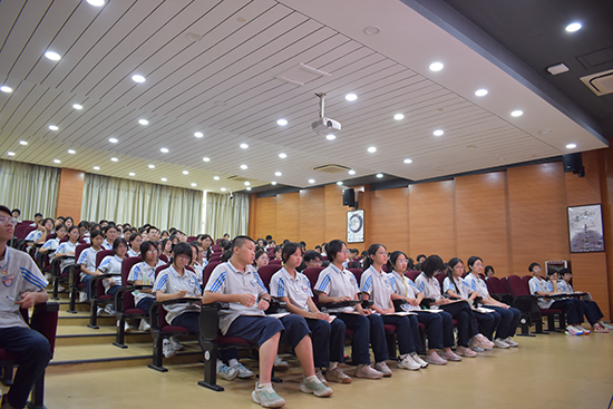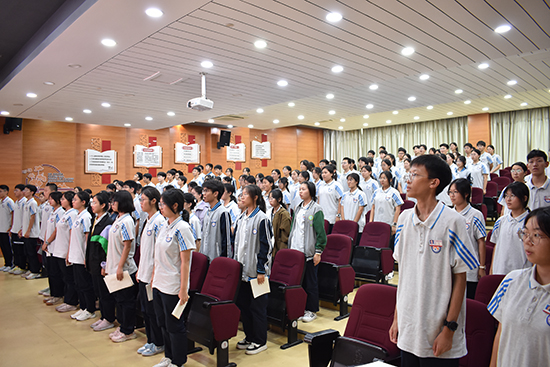 最后,年級組負責人朱洪炳老師為全體學生干部上了一堂題為《爭做青荷學干標兵 助力省現代化學校創建(從頭開始)》的課。朱老師以標題為引,闡釋荷文化的內涵,要求全體學生干部形成比學趕超濃厚氛圍,爭做青荷學干標兵。朱老師以“從‘頭’開始”舉例儀容儀表要求,作為班級的“頭”該如何做,作為新生該如何從“頭”做起等方面對全體學生干部做了要求。