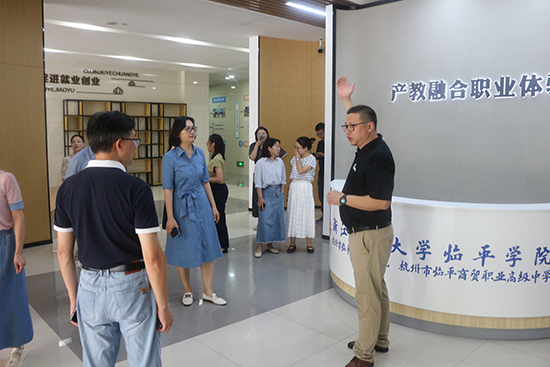 浙江開放大學臨平學院(臨平商貿職高)院長沈琪向與會的各位老師介紹了學校的發展歷程、辦學理念、校園文化、多元辦學職能和近幾年的發展規劃;帶領與會老師先后參觀了產教融合中心、荷韻文化展示館、新商科展示角等場室。學校的環境創設獲得了與會教師的高度稱贊。