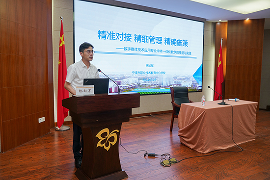會(huì)議期間,金華職業(yè)技術(shù)大學(xué)原副校長成軍、浙江科技大學(xué)信息學(xué)院副院長魏英以及學(xué)校校長林如軍等專家就中本數(shù)媒專業(yè)課程改革、浙江省中本一體化課改要求等議題進(jìn)行了主旨報(bào)告和交流研討。