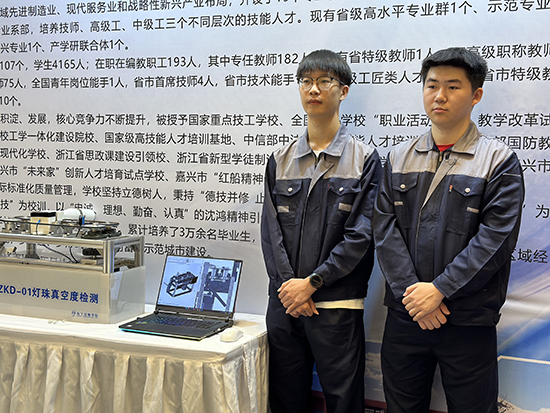 智能制造系展出燈珠真空度檢測儀及“天宮空間站”“古代炮車組合”“現(xiàn)代建筑”等車工、銑工作品。通過電腦展示燈珠真空度檢測儀的三維模型,吸引了眾多智能制造類企業(yè)駐足,彰顯了學(xué)生的創(chuàng)新與實踐能力。