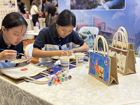 綜合教育系展出學(xué)生手繪麻袋作品,一個個普通的麻袋在學(xué)生們的巧手下,變成了獨具特色的藝術(shù)作品,吸引著眾人的目光,充分展現(xiàn)了學(xué)生的繪畫技能,彰顯出綜合教育系在培養(yǎng)學(xué)生綜合素質(zhì)方面的積極成果。