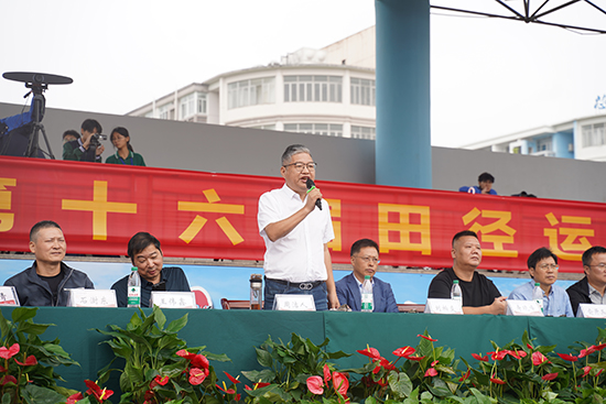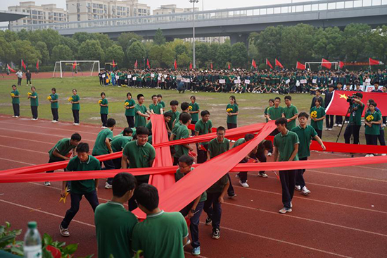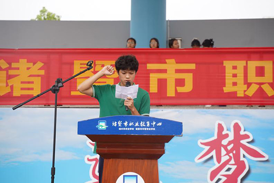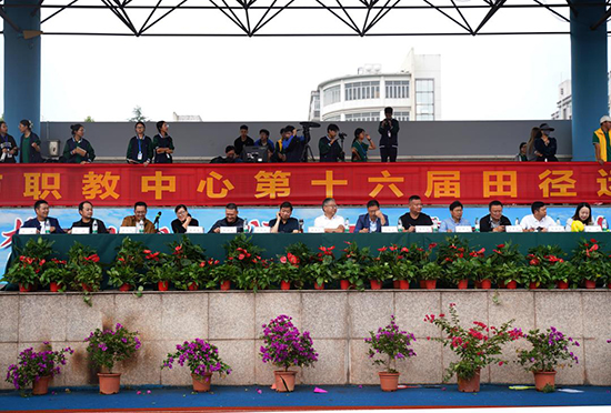 在熱烈的掌聲中,校黨委總書記周潔人宣布諸暨市職教中心第十六屆校園運動會正式開幕。