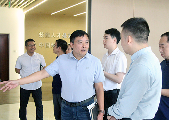 在產(chǎn)教融合大樓,胡贊詳細(xì)介紹了學(xué)校的辦學(xué)特色、校企合作的成功案例、“東遷西歸”項目的階段性進(jìn)展、師資隊伍的建設(shè)情況、職業(yè)教育在社會中的作用以及學(xué)校的辦學(xué)成果等,以“教育鏈、人才鏈、產(chǎn)業(yè)鏈、創(chuàng)新鏈”為脈絡(luò),重點闡述了學(xué)校在“1+1+N”智能制造虛實結(jié)合數(shù)字化學(xué)習(xí)工廠的創(chuàng)新實踐。胡天獎向調(diào)研組介紹永康職業(yè)教育情況,以及當(dāng)?shù)亟逃衷诖龠M(jìn)貴州籍務(wù)工子女教育、深化職教合作等方面的各項舉措。