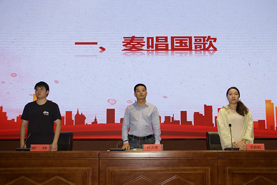 儀式在雄壯的國(guó)歌聲中拉開(kāi)帷幕,全體人員肅立,齊聲高唱國(guó)歌,表達(dá)對(duì)祖國(guó)的熱愛(ài)與敬意。