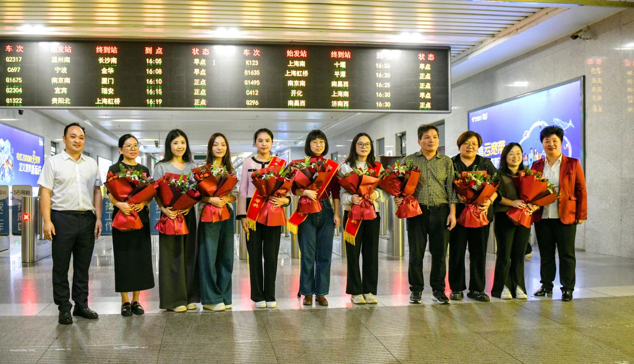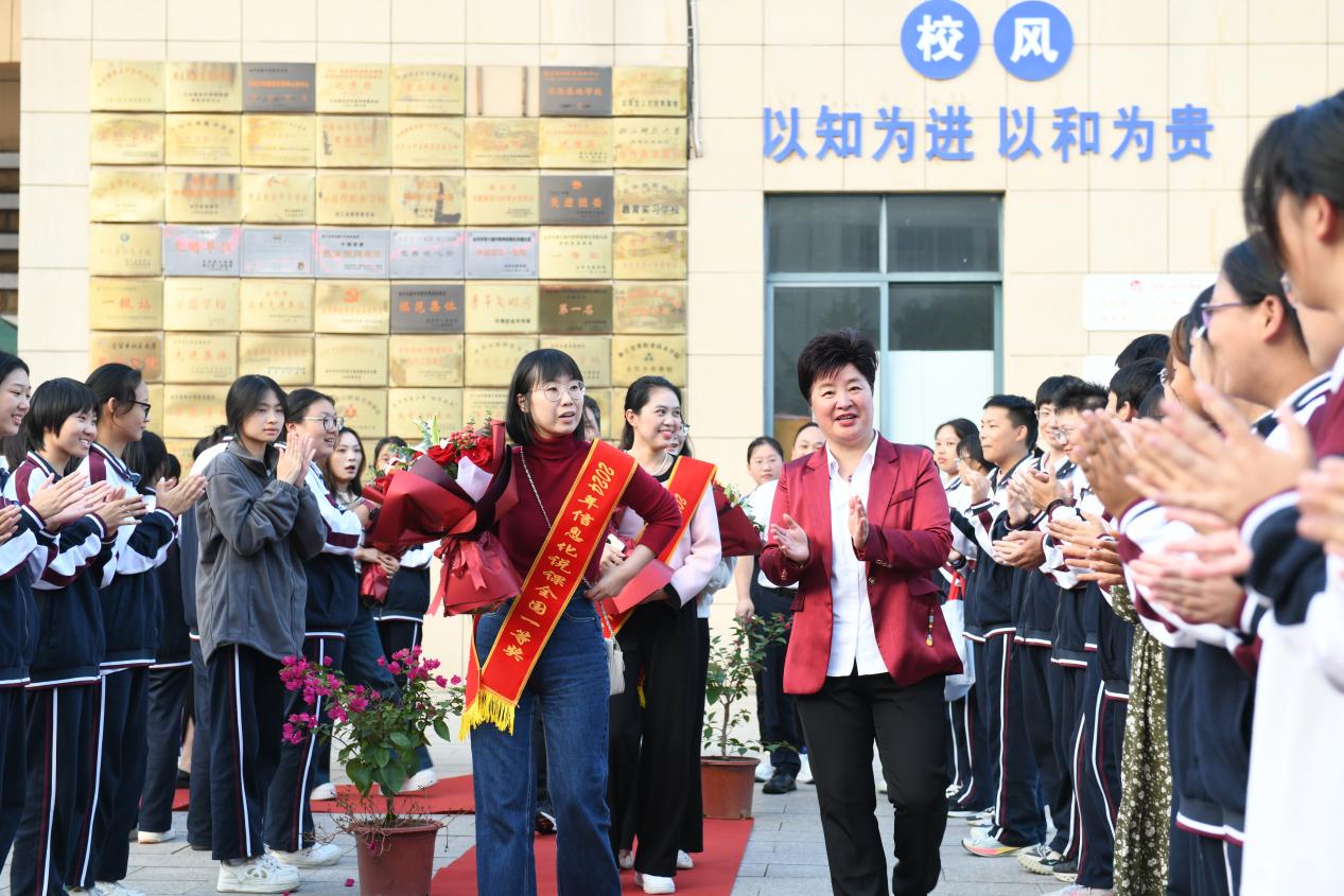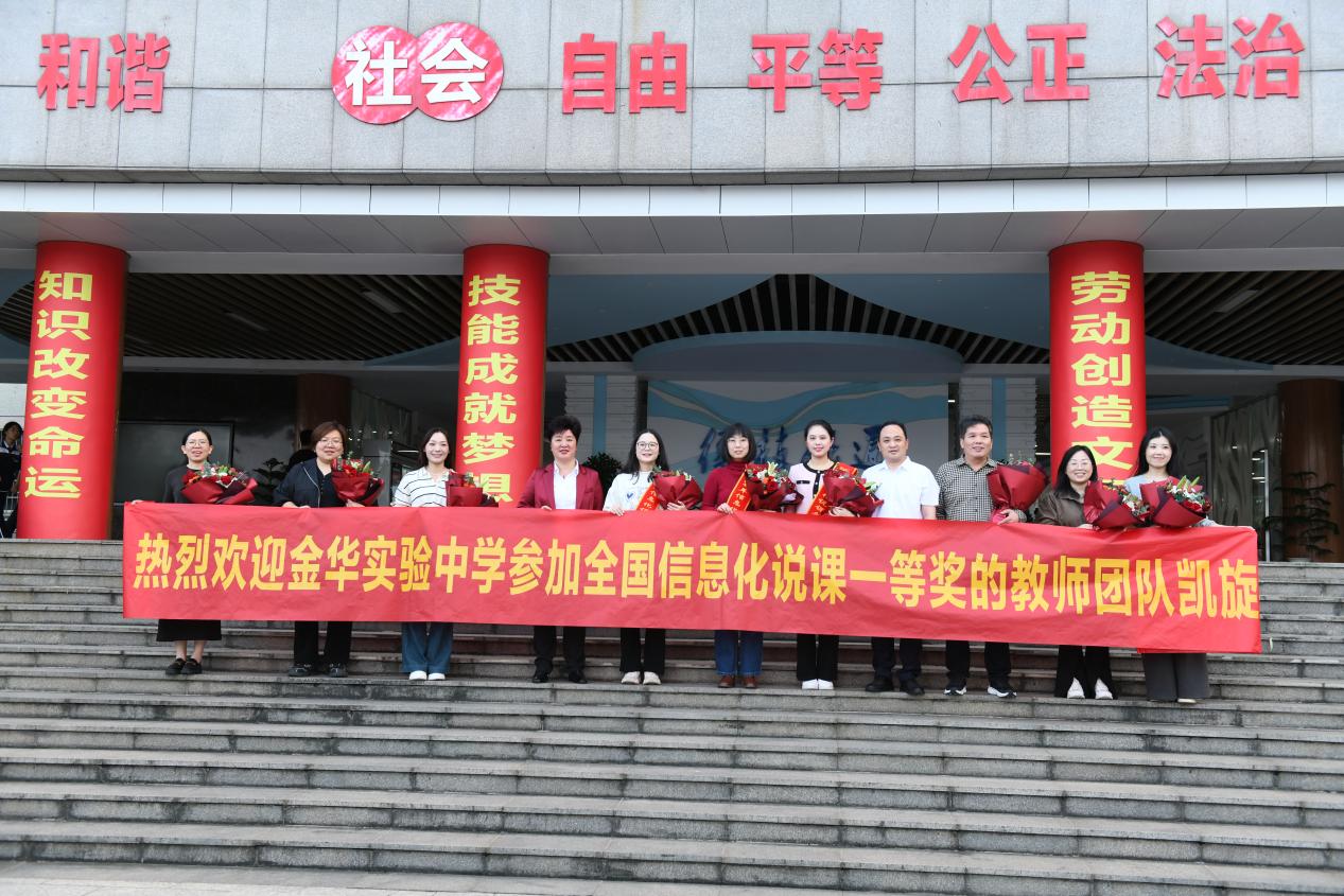 10月21日下午,參賽團(tuán)隊(duì)載譽(yù)而歸,金華實(shí)驗(yàn)中學(xué)為這些凱旋的老師們精心準(zhǔn)備了簡(jiǎn)短而莊重的歡迎儀式,給予他們崇高的禮遇。在金華高鐵站,俞書(shū)記親自為獲獎(jiǎng)老師披上綬帶,并獻(xiàn)上鮮花,表達(dá)了由衷的敬意與祝福。在校內(nèi),師生們整齊列隊(duì),熱烈歡迎他們的歸來(lái)。