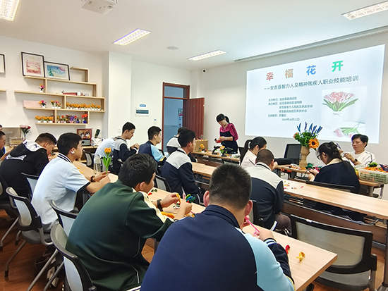 為貫徹落實國務院《促進殘疾人就業(yè)三年行動方案(2022-2024年)》,安吉縣不斷創(chuàng)新殘疾人就業(yè)模式,積極挖掘智力及精神殘疾同胞的職業(yè)潛能。10月23日上午,安吉社區(qū)教育學院昌碩分院(簡稱昌碩成校)聯(lián)合昌碩街道,成功舉辦了一場別開生面的職業(yè)技能培訓活動——“幸福花開”,旨在提升智力及精神殘疾人的職業(yè)能力。