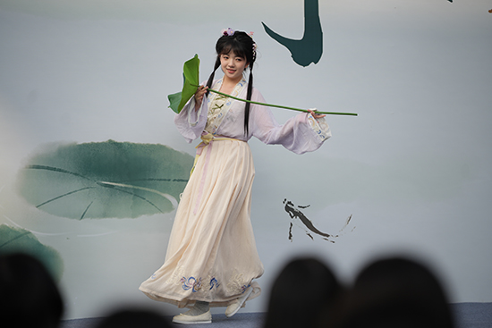 中華古詩詞是傳統(tǒng)美德和文化的精髓,是中國文化的瑰寶,學(xué)院的詠荷吟唱社將中華詩詞配上旋律節(jié)奏,將中華文化賦予青春面貌,這次活動他們帶來了別具韻味的表演《送元二使安西》。