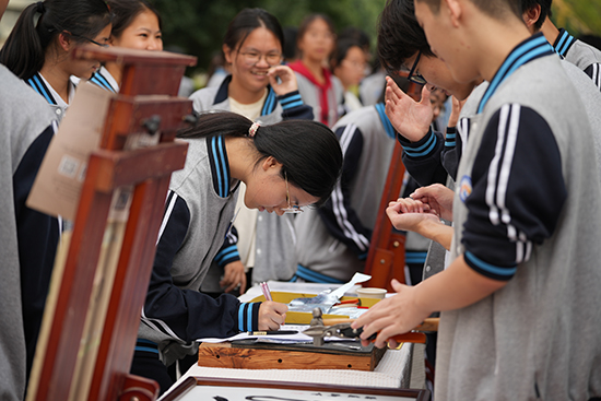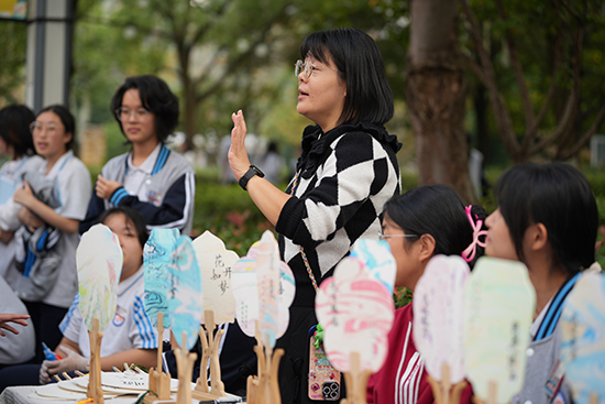 董倩倩老師指導(dǎo)的漆扇體驗非遺社團,讓師生都忍不住駐足體驗,五彩之色通過水在扇面呈現(xiàn)美妙圖案,這正是傳統(tǒng)技藝的魅力。