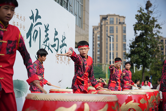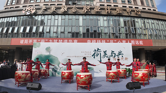 浙江開放大學(xué)臨平學(xué)院積極推進非遺社團建設(shè),努力讓非遺文化在校園里“活”起來。本學(xué)期學(xué)校成立了立荷擊鼓隊,在學(xué)生鏗鏘有力的鼓聲中,活動正式開始。