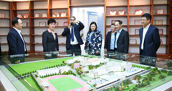 簽約儀式后,在俞書記的陪同下,Pierre Larrat教授一行參觀了學校的現代化教學設施和充滿文化氛圍的校園環境。從附屬幼兒園到校史館,從盧文臺文化廣場到白沙文化創業園,每一處都體現了學校對優質教育的不懈追求,使法方代表深刻感受到中國教育現代化進程中的蓬勃生機。
