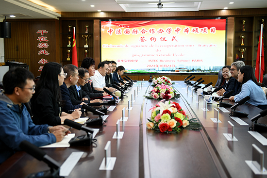 在熱烈的掌聲中,雙方正式簽署了中法國際合作辦學中本碩項目的合作協議。該協議的簽署標志著兩校將在本碩連讀、學生交流和學習訪問等方面展開深入合作,共同培養具有國際競爭力的復合型專業人才,推動中法教育合作與文化交流。