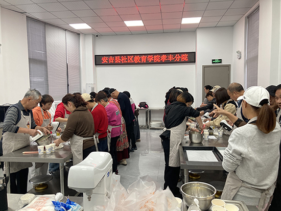 10月28日下午,安吉社區教育學院孝豐分院開展了“曲奇餅干”烘焙培訓活動,現場教授居民制作曲奇餅干。三眼井社區30位居民在學校烘培室參加了培訓活動。