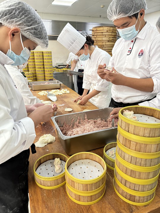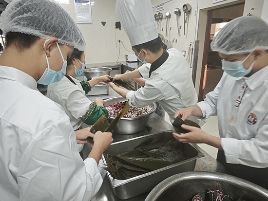 活動現場,師生們制作的燒賣、赤豆粽子、鮮肉小餛飩三種特色小吃深受好評。