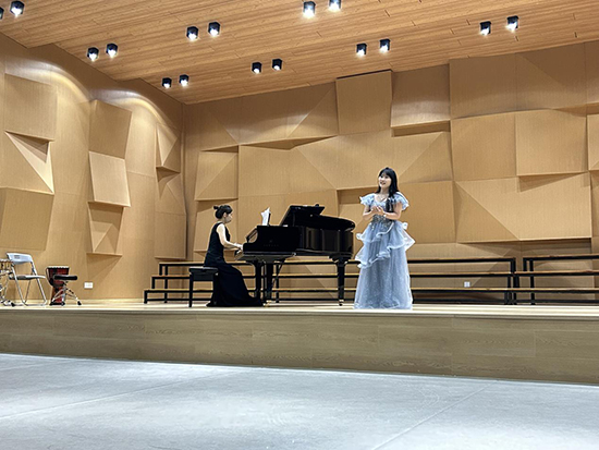 一曲《風蕭瑟》拉開了本次音樂會的序幕,接著《梧桐樹》《昭君出塞》等經典曲目輪番上演。這些小小“音樂家”雖然青澀,但認真的態度與真摯的表演打動了在座每一位師生。值得一提的是,班主任廖夢莎老師為每一位聲樂表演的學生進行鋼琴伴奏,扎實的功底與流暢的旋律,讓在場觀眾充分感受到演出的不俗水準。