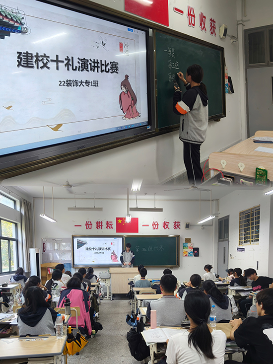 在“建校十禮”的引領下,建筑藝術系的學生們不僅在日常學習生活中嚴格遵守禮儀規(guī)范,更通過一系列實踐活動將禮儀文化內(nèi)化于心、外化于行。各班級結合自身專業(yè)特點,創(chuàng)新性地開展了形式多樣的活動。建筑裝飾班的學生們,以一場別開生面的“建校十禮”演講比賽,拉開了禮儀文化實踐的序幕。他們圍繞“建校十禮”的內(nèi)涵與實踐,用生動的語言和真摯的情感,表達了自己對禮儀文化的深刻理解與獨到見解。這場演講比賽不僅鍛煉了學生們的演講技巧,更在全班范圍內(nèi)營造了濃厚的禮儀文化氛圍。
