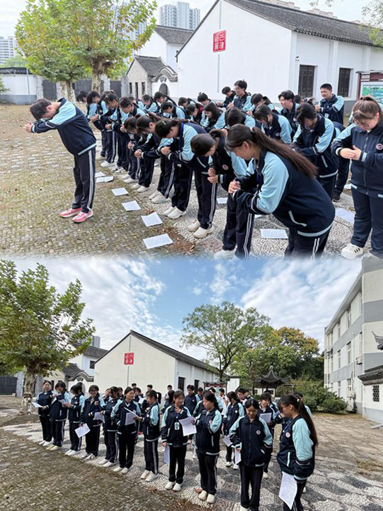 古建、園林班的班主任們則帶領班級前往古建園,開展了一次別開生面的禮儀實踐活動。學生們在古建園內(nèi)互相整理儀容儀表,對著魯班像學習古人的問候行禮方式,通過親身體驗,深刻感受到了傳統(tǒng)禮儀文化的獨特魅力與深厚底蘊。