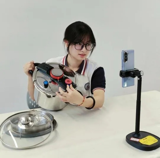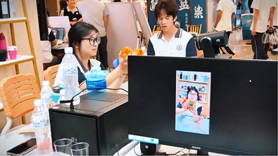 在高三工學交替的崗位中,王杭燕同學積極主動把所學運用到實際,不但勤學好問,而且在崗位中創新工作模式,得到企業的贊許。同時,善于結合行業發展趨勢,敢于探索與創新,苦練英語,熟練地掌握了英語直播技能。