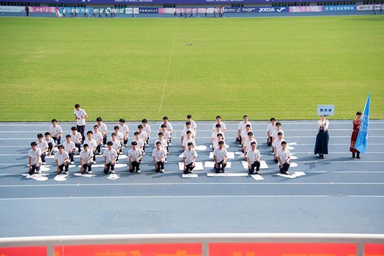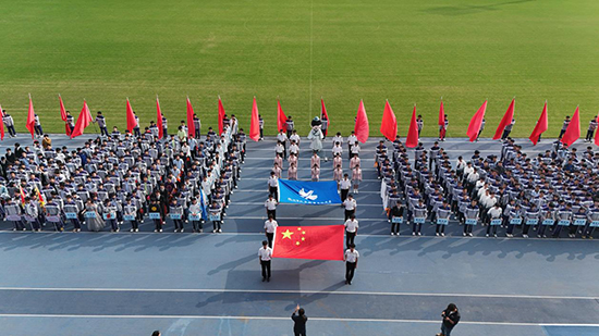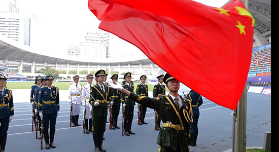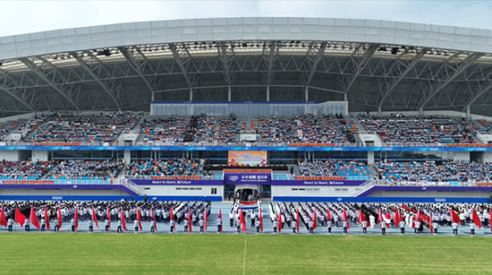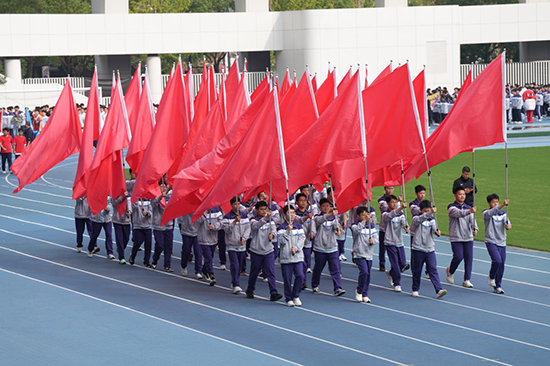 入場完畢后,全場肅立,升國旗,奏唱國歌,表達對祖國的崇高敬意!