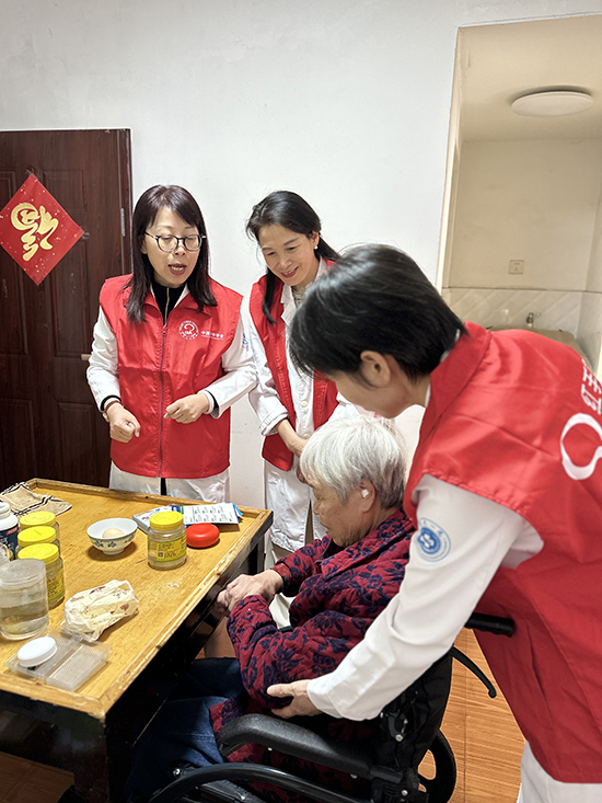 值得一提的是,活動還深入到了社區居民家中。醫護團隊特意來到大通橋社區80歲的王枝蘭老人家中,為王奶奶進行了全面且細致的醫學指導。從日常用藥到生活起居的注意事項,醫護人員都一一叮囑,讓王奶奶及其家人感受到了滿滿的關懷。