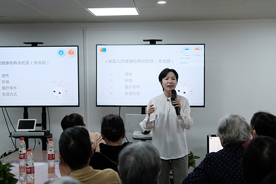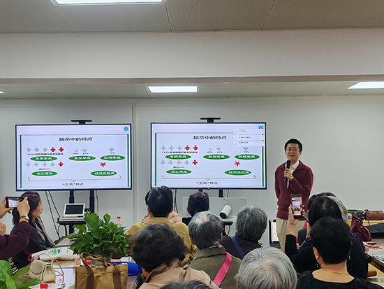 隨后開展了兩堂健康宣教講座。神經內科資深護士長胡葉文帶來了《如果吃得更健康》的講座,她用通俗易懂的語言,結合實際案例,詳細講解了飲食與健康的緊密關系,并通過提問搶答闖關的趣味形式讓居民們深刻認識到預防卒中方面的飲食要點;神經內科韓思達醫生的《別讓您的大腦遭遇“堵車”危機》講座則以生動的比喻,形象的視頻,深入淺出地介紹了卒中的成因、危害以及預防措施,提醒大家養成健康的生活方式,定期進行腦卒中危險因素篩查,做到早預防、早發現、早診斷、早治療,有效地防治腦卒中。