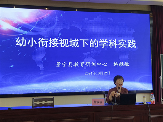 培訓(xùn)期間,浙江省景寧畬族自治縣教研中心黨委書記、浙江省特級(jí)教師柳敏敏作主題為《幼小銜接視域下的學(xué)科實(shí)踐》的專題講座,她從“對(duì)幼小銜接的基本認(rèn)識(shí)”“推進(jìn)學(xué)科實(shí)踐的主要做法”“新課標(biāo)下小學(xué)數(shù)學(xué)入學(xué)適應(yīng)課程設(shè)計(jì)的三大策略”等方面展開,讓學(xué)員們?cè)谛陆滩膶?shí)施階段過程中對(duì)如何樹立正確的教材觀、學(xué)生觀以及樹立跨學(xué)科的視野有了新的認(rèn)識(shí)。湖州市教育科學(xué)研究中心小學(xué)數(shù)學(xué)教研員楊海榮作主題為《夯實(shí)底層鋪墊 預(yù)伏遷移線索》專題講座,講座圍繞著新教材“度量”“數(shù)的意義”等內(nèi)容,通過新舊教材的對(duì)比向參訓(xùn)教師闡述“原理一致性”,讓大家明確教材呈現(xiàn)的僅是知識(shí)點(diǎn),隱藏在知識(shí)點(diǎn)后的隱性目標(biāo)需老師們?nèi)ミM(jìn)一步挖掘,教師要先厘清學(xué)科結(jié)構(gòu),要會(huì)提煉核心概念。長(zhǎng)興縣小學(xué)數(shù)學(xué)教研員楊明嵐作題為《結(jié)構(gòu)化視域下人教版小學(xué)數(shù)學(xué)新教材的整體變化》專題講座,講座從“單元設(shè)計(jì):體現(xiàn)結(jié)構(gòu)化的整合”“內(nèi)容編排:體現(xiàn)結(jié)構(gòu)化的一致性”“復(fù)習(xí)關(guān)聯(lián):構(gòu)建結(jié)構(gòu)化的體系”三方面向?qū)W員們闡述了教學(xué)要回歸學(xué)科本質(zhì)、回歸教育規(guī)律。