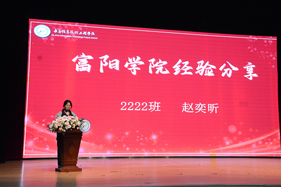 2222班趙奕昕、2223班況林鑫作為學生代表,向全體高三學子分享在富陽學院跟讀的寶貴經歷并激勵大家珍惜時光,認真備考,勇敢追夢。
