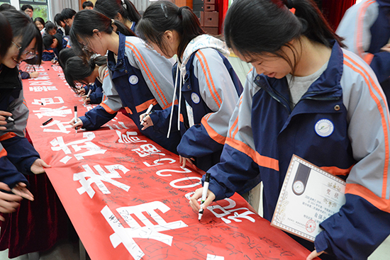 會后,同學們在橫幅上鄭重簽下自己的名字,以此表達遵守考試紀律、維護考試公平公正的決心。