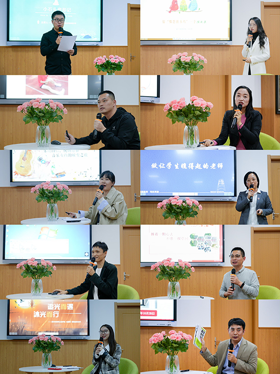 活動現場,十位征文獲獎教師代表一一分享了他們各自獨特的教育故事。他們來自不同的學校,任教不同的學科,面對各不相同的學生,心生各自的教育思考和感悟。《小石頭變形記》《體育之光,照亮成長之路》《給憤怒的小鳥一個摸著殺》《當你決定伸手時,我已抱住了你》飽含深情、細膩感人,老師們用愛滋潤學生的心田,用關懷守護學生成長;《樂動自信,悅納青春——一個音樂女孩的蛻變之旅》《幸福教育路》蘊藏育人的智慧,老師是“點燈人”,不斷激發學生的潛能,引導學生突破和超越自我;《追光而遇 沐光而行》《我的教師成長“四境界”》《在拉薩的清晨》《愛國 學習 貢獻——情系紅船圣地的院士》講述成長的思考以及教育之精神,他們用熱烈的青春、廣博的胸懷和無私的奉獻書寫著教育的壯麗詩篇。每一個故事都深深觸動著在場每一個人的心弦,在老師們或平實、或深沉、或激情、或溫柔,或幽默的講述里,我們深深感受到他們對于教育事業的執著與堅守,對于學生深沉的愛與責任。在教育的璀璨星河里,每個人都是一顆無法復制的星辰,終將閃耀與眾不同的光芒。