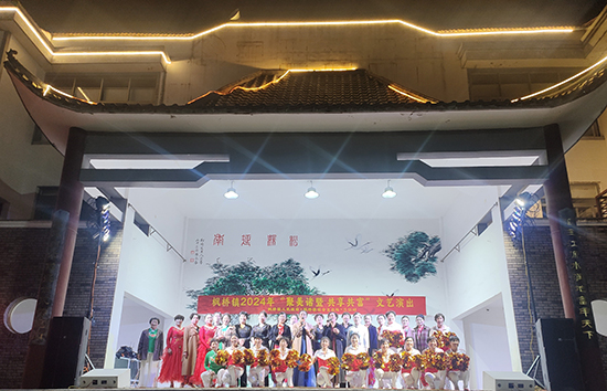 11月5日晚,諸暨市楓橋鎮三江村的戲臺燈火通明,“楓橋鎮2024年‘聚美諸暨 共享共富’文藝演出”正在火熱進行中,近300位觀眾到場觀看,共同度過了一個美好快樂的夜晚。