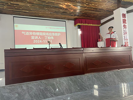 培訓過程中,來自安吉縣紅十字會的專業急救講師詳細講解了氣道異物梗阻的成因、癥狀以及在不同情況下應采取的應急救護措施。講師通過理論與實際操作相結合的方式,使抽象的急救知識變得直觀易懂。現場還設置了模擬演練環節,學員們積極參與,在講師的指導下親身體驗正確的急救操作手法,如海姆立克急救法等。