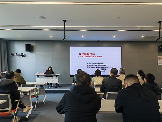 姚愛英給嘉興教育學(xué)院的教師分別線上、線下多次宣講。為擴大科星精神教育面,嘉興教育局和嘉興教育學(xué)院,特安排姚愛英老師分別在線上、和線下二次講座,第一次在嘉興教育學(xué)院“科星精神教育聯(lián)盟學(xué)校成立”大會上,教育局領(lǐng)導(dǎo)和14所學(xué)校德育老師們聽她宣講;“從紅船到飛船——努力成就青少年的航天強國夢”,領(lǐng)導(dǎo)們評價特高!