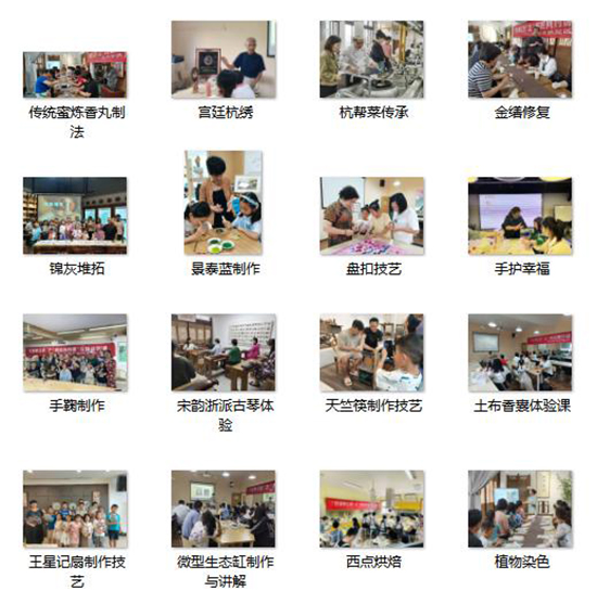 2022年,項目團隊成員陸續走訪調研了工匠技藝生產性基地、相關企業,非遺大師工作室,傳統老手藝學習點。通過“政校企社”協同,兩年來陸續挖掘培育了“杭州天竺筷廠”“杭州王星記扇業有限公司”“傳梭博物館”“杭州市中策職業學校”“杭州市創意藝術學校”“百草園”“慧廬琴堂”“武林之光非遺傳習中心”……等9個“行走的工匠”終身學習體驗基地,在拱墅區終身學習活動周開幕式上授牌。各工匠基地有的集工藝博物館和學習體驗場于一體,有的將工作生產場所和場館參觀體驗融一體,有的結合鄉村微型博物館和工匠技藝培訓點,各具特色,建立以來受到了市民們的歡迎。“行走的工匠”項目基地年均接待市民公益體驗學習活動10000余人次,開展“匠心之旅”研學活動100余場,市民們既能在城市參與各類型的非遺技藝體驗培訓,又能與鄉村進行文化互動,項目的實施促進了工匠技藝從靜態向活態傳承,為弘揚傳統技藝所蘊含的文化精髓和價值、發展優秀傳統鄉土文化提供了零距離感受、體驗和學習的陣地。
