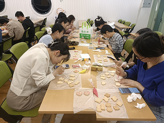 一位學員開心地說道:“這次來參加糖霜餅干的制作,好有成就感。用糖霜在餅干上畫畫,還是第一次嘗試。第一塊做的不好看,后來慢慢有經驗了,就比較有感覺了。”