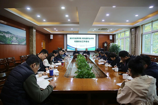 為進一步強化校園安全管理,確保師生安全及校園和諧穩定,11月20日下午,湖州市技師學院、德清縣職業中專召開校園安全工作專題會議。縣教育局黨委委員、縣職業教育黨委書記、湖州市技師學院黨總支書記潘強,縣教育局黨委委員、縣職業教育黨委副書記、湖州市技師學院院長、德清縣職業中專校長董國偉出席會議,兩校中層正職及以上行政領導參加會議。