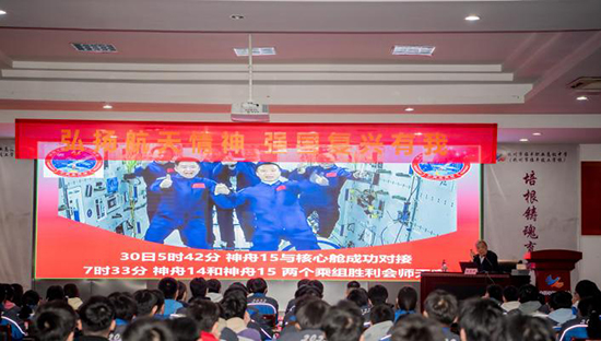 沈院士指出,中國的航天事業(yè)始于上個世紀50年代中期,經(jīng)過將近70年的艱苦奮斗,成功走出了一條適合國情并具有自身發(fā)展特色的道路。目前,我們建成了具有國際先進水平的航天中心,擁有一大批用于工程試驗的模擬試驗裝備,建立了三支重要隊伍:航天員教練員隊、航天醫(yī)生隊和航天隊……他還向同學們介紹了航天“三步走”發(fā)展戰(zhàn)略:第一步,載人飛船工程;第二步,空間實驗室;第三步,空間站工程。他自豪地表示,“三步走”我們都取得了成功!