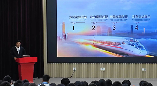 城市軌道交通運營管理專業負責人燕旭楠詳細介紹軌道交通專業中高職一體化分段培養的內容,包括“方向崗位規劃”“能力課程匹配”“中職高職銜接”“特色亮點展示”四個方面。