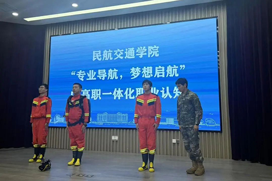 民航交通學院黨支部書記趙瑞燁致歡迎辭,并介紹行業情況和發展趨勢,讓學生對行業和職業有了初步的了解。隨后,民航交通學院學生會執行主席婁又嘉同學發言,為學弟學妹們理清中高職不同階段的學習方向,并表達期望和祝福。
