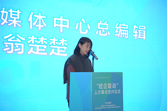 活動中,翁楚楚總編輯發表了講話。她首先介紹了臨平融媒體中心在近年來取得的一系列令人矚目的成果,在新聞報道、文化傳播、輿論引導等方面都發揮了極為重要的作用,其制作的節目不僅在本地廣受贊譽,還在區域乃至更大范圍內獲得了眾多獎項與高度認可,成功地提升了臨平地區的知名度與文化影響力。她表示,臨平文化傳媒集團將充分發揮自身在媒體資源、行業經驗等方面的優勢,與學校緊密合作,共同探索人才培養的新路徑。同時,她也希望學生們能夠珍惜這次難得的機會,努力學習,不斷提升自己的專業技能和綜合素質。