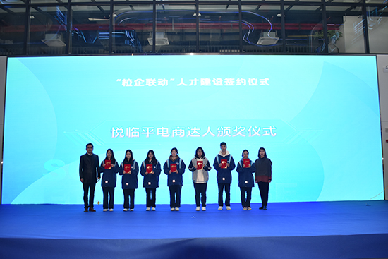 隨后,進入悅臨平電商達人頒獎環節,沈琪校長與翁楚楚總編輯、邵曉舟書記與黃月春黨委委員分別登臺,為在悅臨平活動中取得突出成績的電商達人們頒發榮譽獎項。這一環節不僅表彰了學生的優秀表現,也進一步激發了學生們的學習熱情和職業憧憬。