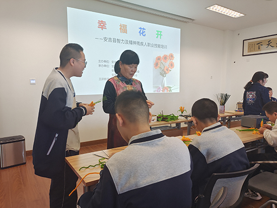 為積極響應國務院《促進殘疾人就業三年行動方案(2022—2024年)》的號召,安吉縣致力于挖掘智力及精神殘疾同胞的職業潛能,提升他們的職業能力,以促進殘疾人就業。10月9日,安吉社區教育學院昌碩分院(簡稱昌碩成校)攜手昌碩街道,共同舉辦了“幸福花開”——安吉縣智力及精神殘疾人職業技能培訓活動。