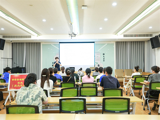 9月5日晚,安吉縣社區教育學院遞鋪分院新時代市民夜校第五期火熱授課中,來自轄區各個村、社區的100多名學員分別參加了國畫、家庭照護、竹笛和排舞四個班級的學習。該日夜校課程分別邀請了中國書畫家協會會員周捷、縣人民醫院副院長戴美琴、專業竹笛教師李方和專業舞蹈老師柯建敏授課。