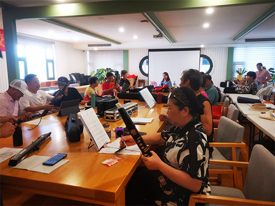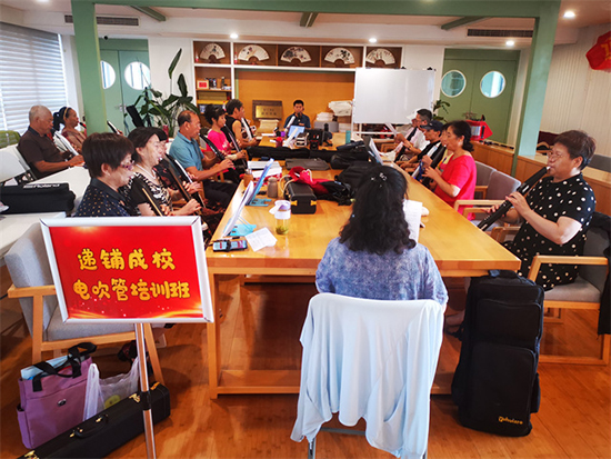 越來越多的老年朋友加入電吹管班,一起接受音樂的熏陶。吳增芳說道:“感謝學校為我們提供這樣的練習平臺和場地,讓我們有機會在舒適的環境中練習電吹管。”(邱立美)